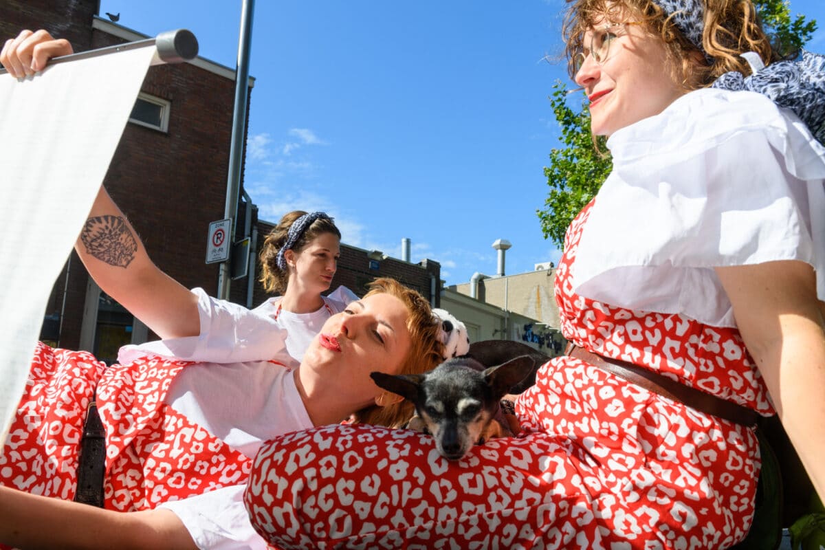 Door als een ware mensen- en hondenroedel door de stad te bewegen, kom je met allerlei vragen in aanraking. Is de stadsinrichting van Tilburg wel geschikt voor dieren? Verplaatsen we ons wel genoeg in ‘de ander’, mens óf dier? Hoe ver staan we van de natuur af, en is dat wel goed voor ons? Een prachtig pleidooi voor de perspectiefverandering die in deze tijd zo belangrijk is. Woef!