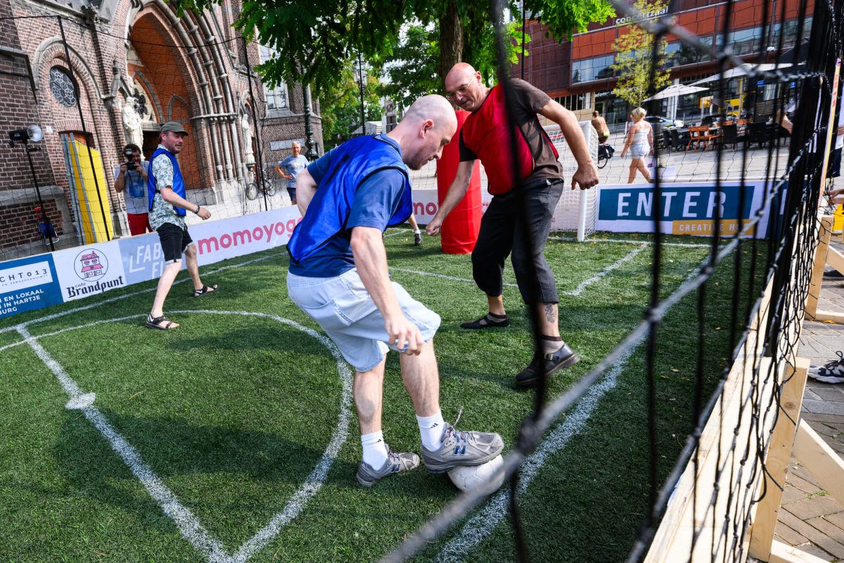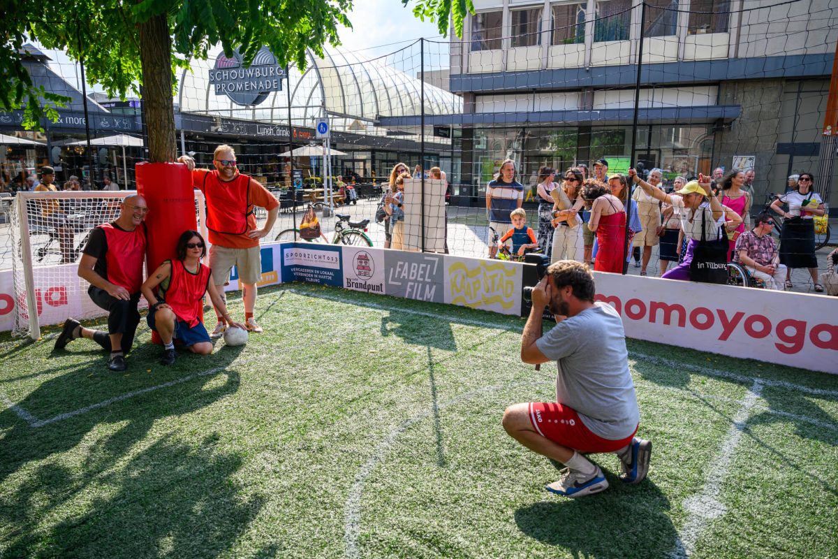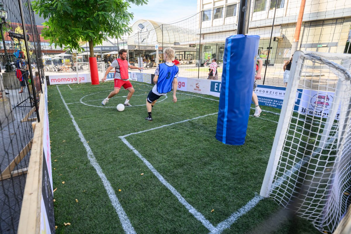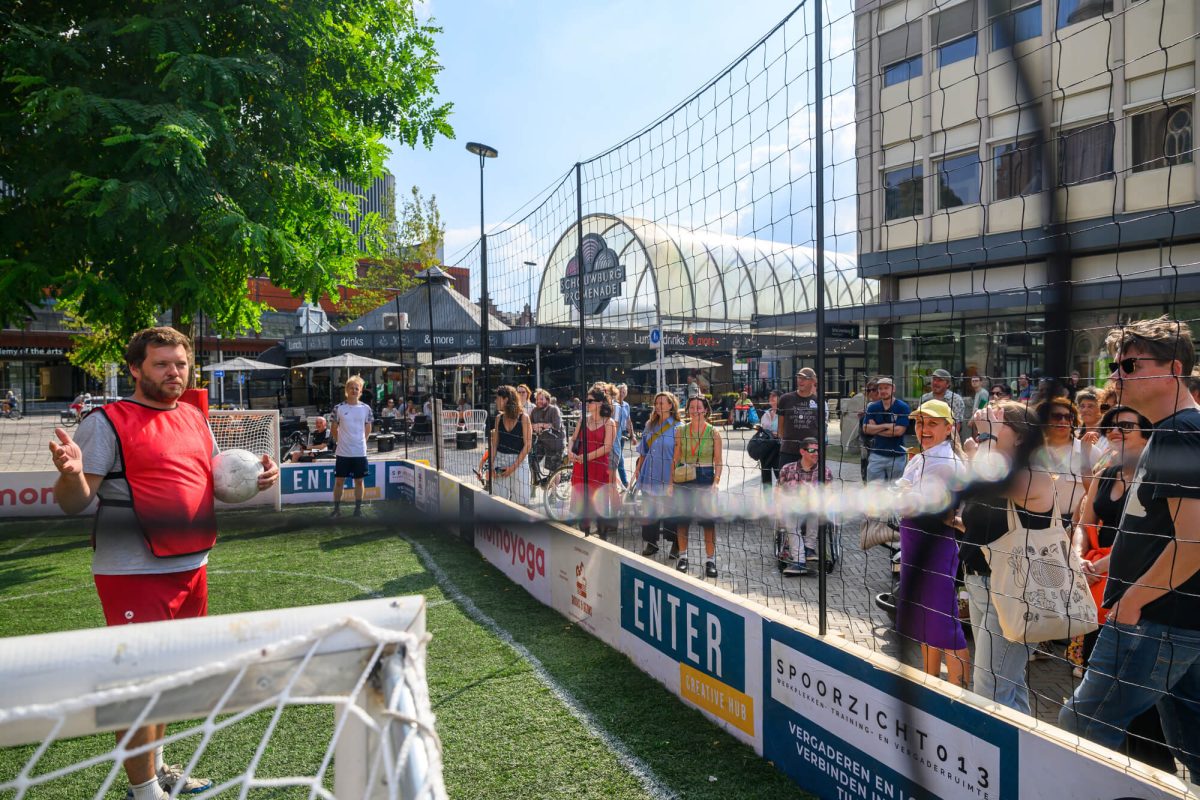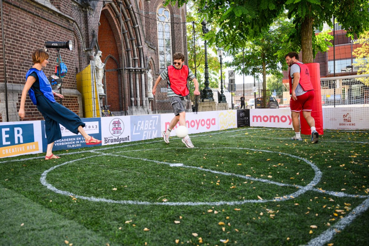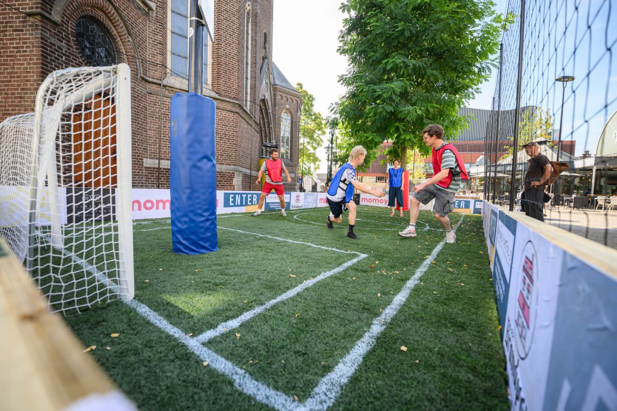 Een officieel voetbalveld moet van goede kwaliteit zijn, zonder oneffenheden of obstakels die het spel kunnen beïnvloeden. Dat laatste is een dingetje bij Teamplayer. Midden op dit pop-up voetbalveld staan onhandige straatobjecten in de weg. Met stootkussens ingepakt, dat gelukkig wel. Het werk probeert een speelse wedstrijd tussen natuur en cultuur uit te lokken. Je hoeft overigens geen Messi of Ronaldo te zijn om hier een balletje te komen trappen. Iedereen is welkom, ook de kelderklasse.