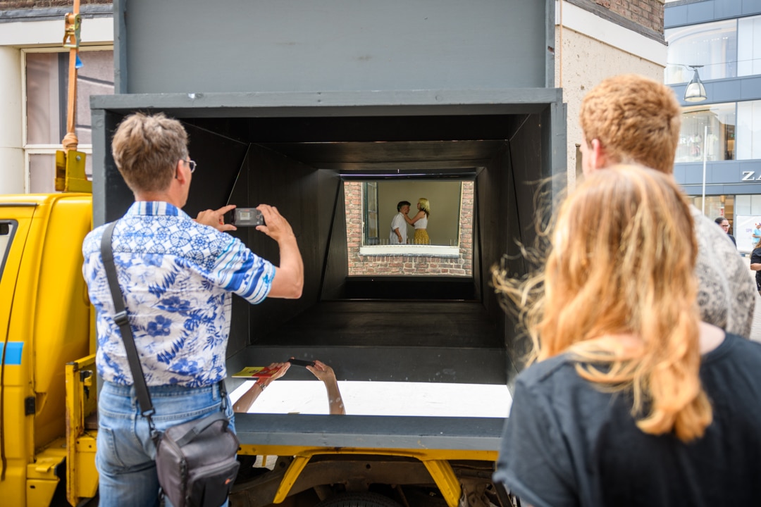 Bewoners aan een bakje koffie. Een opslagmagazijn vol naakte mannequins. De restanten van een vreemd feestje. Een bloedstollend mooie gevel. Je weet van tevoren nooit welk tafereel je zult aantreffen. En precies dat maakt De Periscoop tot een verrassend microavontuur.