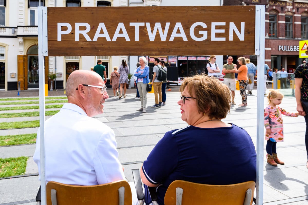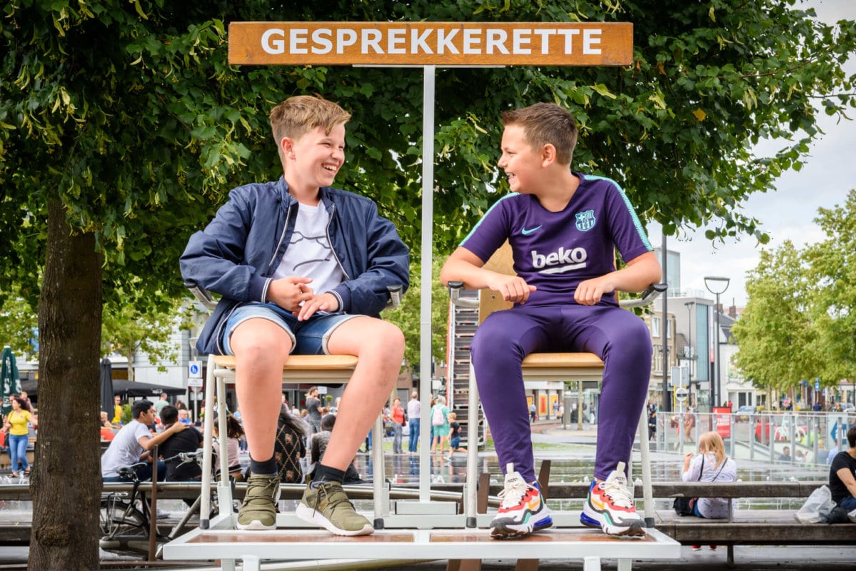 Met namen als ‘Zingever’, ‘Face to Face’ en ‘Praatwagen’ zijn de installaties hét podium voor loslopende mensen; zij die zijn losgeweekt van familiebanden, verenigingen, politieke partijen en religieuze instituten. Want als je door groeiend individualisme op jezelf bent teruggeworpen, kan een gesprek je opnieuw richting geven.