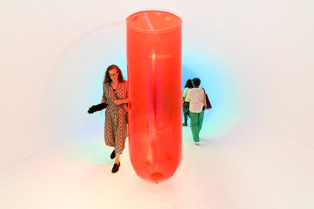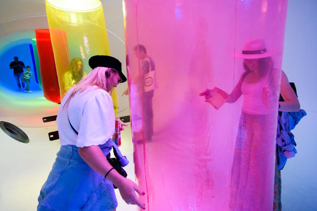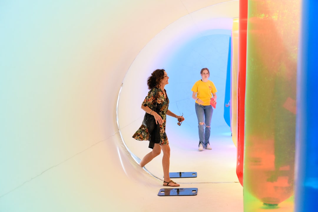 Een reusachtig, ruimtelijk, kleurrijk en synthetisch sculptuur om doorheen te lopen, waar zonlicht wordt omgezet in geluid.