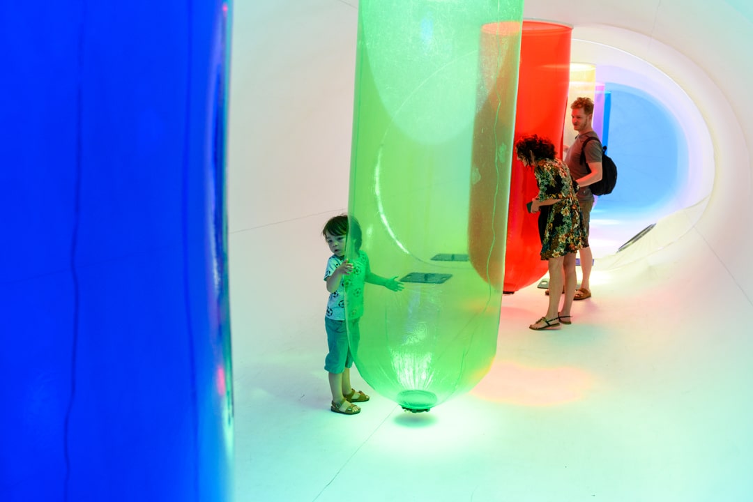 Sound of Light van het Berlijnse collectief Plastique Fantastique in samenwerking met Marco Barotti geeft je deze mindblowing mindfuck in een enorm sculptuur waarin zonnestralen geluidsgolven worden. En de makers gaan verder dan dat: de sculptuur verandert dankzij slim geplaatste woofers in een gigantische, trillende luidspreker waardoor je op verschillende plekken een totaal verschillend concert te horen krijgt. Binnenlopen is meemaken!