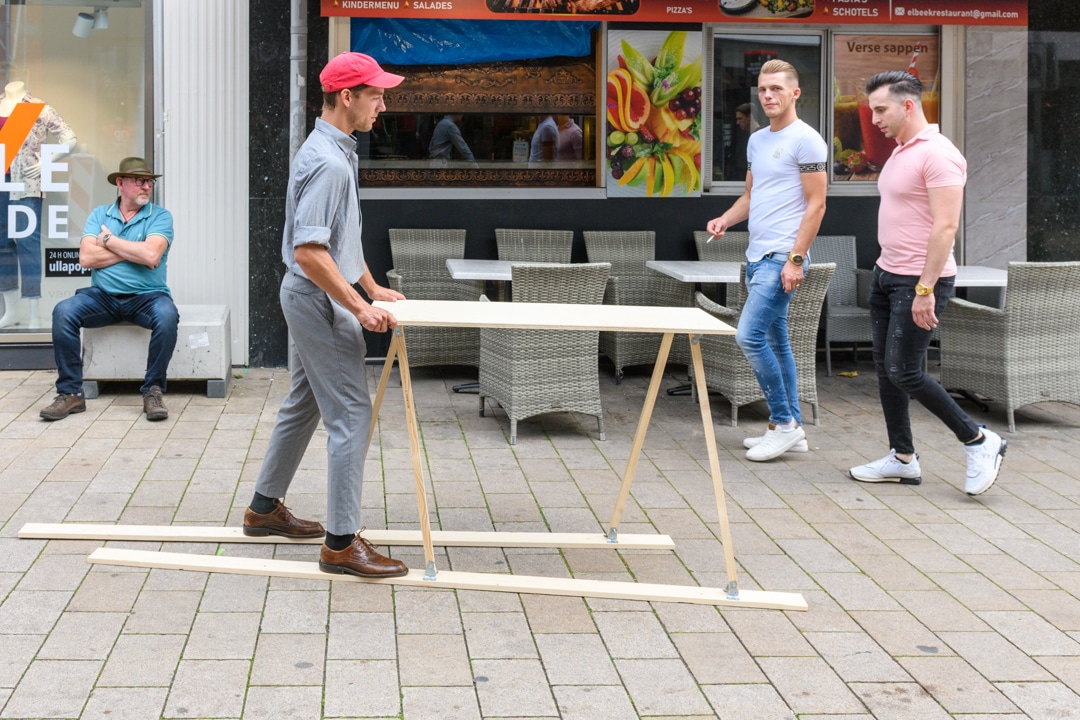 Kun je een tafel en een stoel tot leven brengen door ze als oude vrienden naar elkaar te laten zoeken in de stad? Ruben Mardulier en Michiel Deprez doen op Kaapstad in ieder geval een poging en antropomorfiseren de gebruiksvoorwerpen in een bijzonder poppenspel.